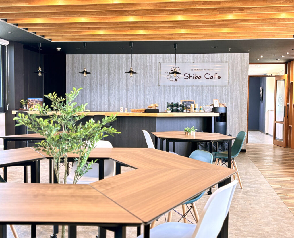 社員の皆さまがほっと一息ついたり、自由にドリンクを楽しんだりできるこのスペースは、2024年7月にリノベーションされたばかり。そこにアートが加わり、さらにあたたかく、心が和らぐ空間へと生まれ変わっています。もちろん、新発田建設様のキャラクター「しばけん君」も、やさしく迎えてくれます。